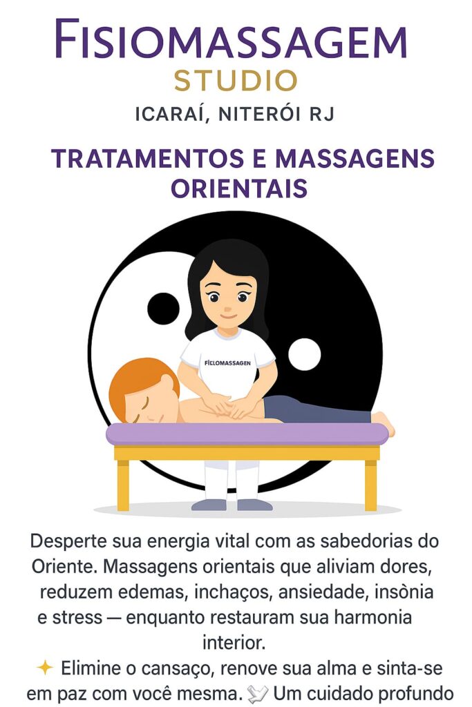 Na Fisiomassagem Studio em Niterói RJ, a massagem Shiatsu utiliza pressão com os dedos ao longo dos meridianos, promovendo relaxamento profundo, alívio de dores e equilíbrio da energia vital (Qi). Técnica milenar japonesa que reduz o estresse, melhora a circulação e fortalece o sistema imunológico. Atendimento acolhedor e ambiente harmônico.